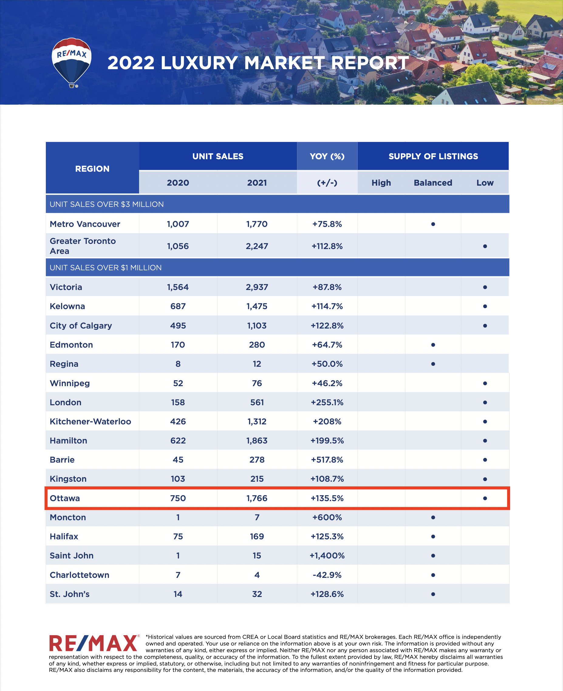 Residential home sales over $1,000,000 accounted for 11.1% of the 2021 Ottawa market compared to 5% in 2020. 1703 residential homes sold over $1M in 2021. A similar linear trend is also visible with condominiums selling over $1M accounting for 1.1% of the market compared to 0.5% in 2020, with 53 units sold in 2021. Get in touch to learn what this means for your Real Estate buying, selling or investing goals!