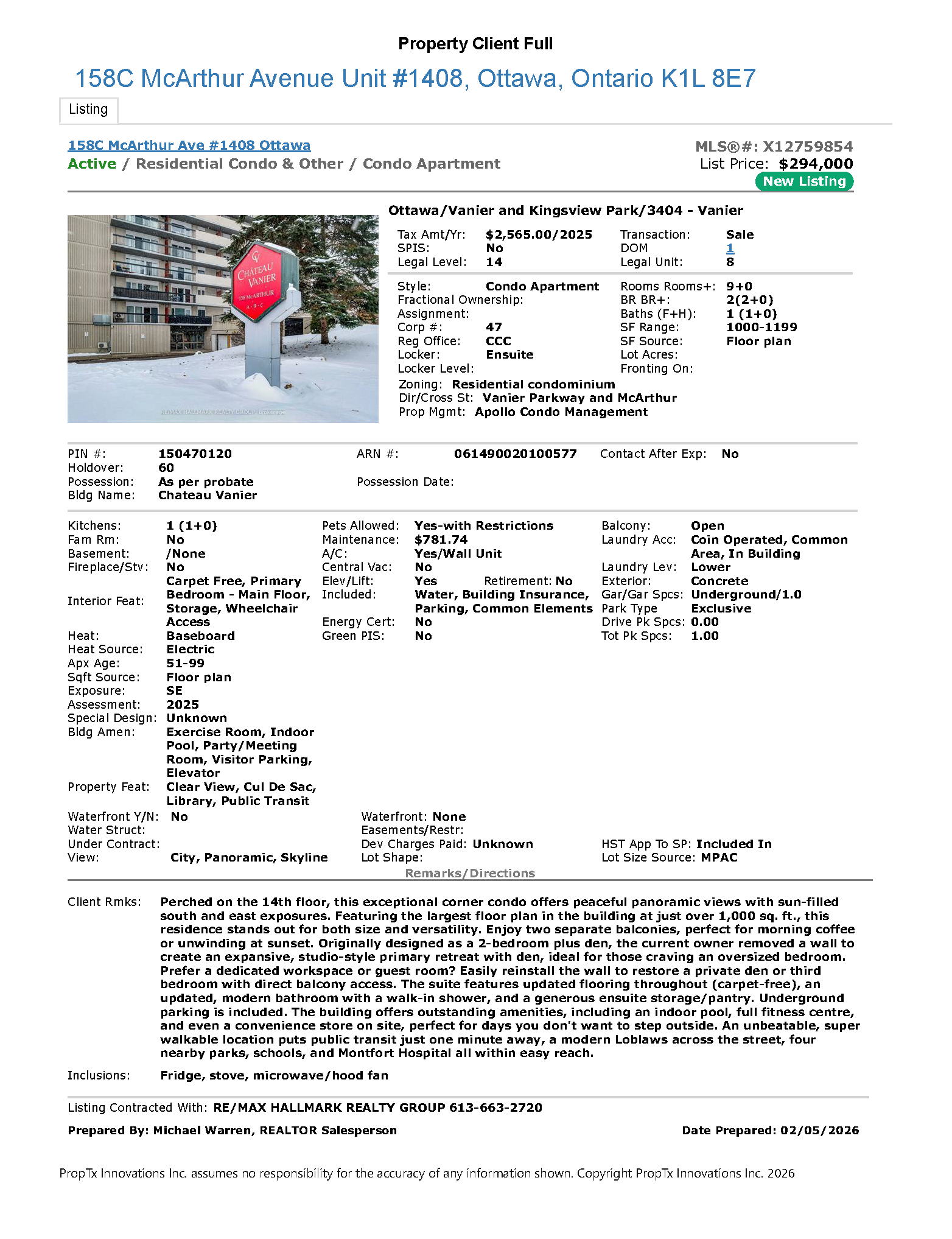 1408-158C McArthur Avenue, Ottawa