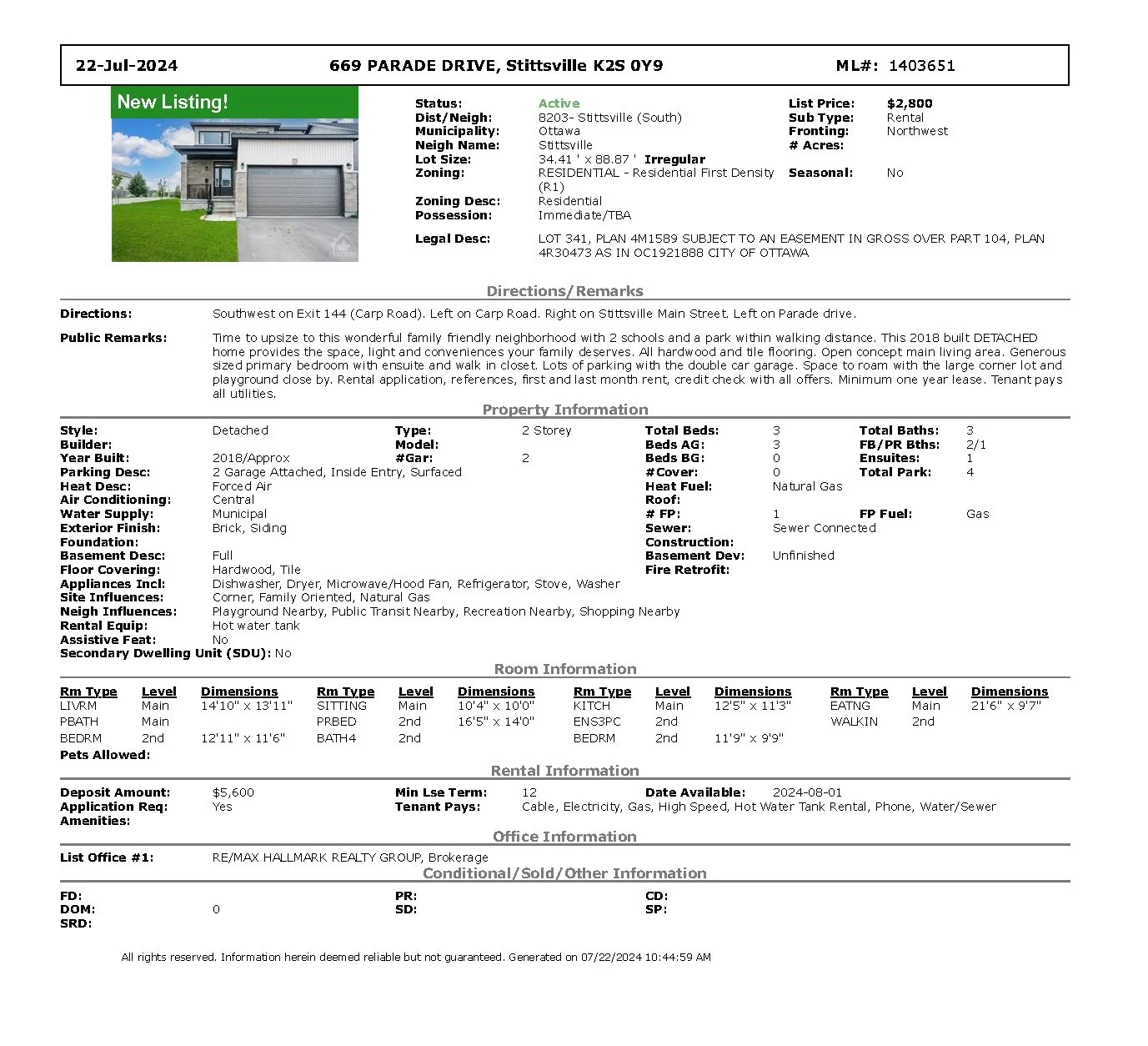This 2018-built DETACHED home provides the space, light, and convenience your family deserves. All hardwood and tile flooring. Open concept main living area. It is a generously sized primary bedroom with an ensuite and a walk-in closet. Lots of parking with the double car garage. Space to roam with the large corner lot and playground close by. Rental application, references, first and last month's rent, and credit check with all offers. Minimum one-year lease. The tenant pays all utilities.